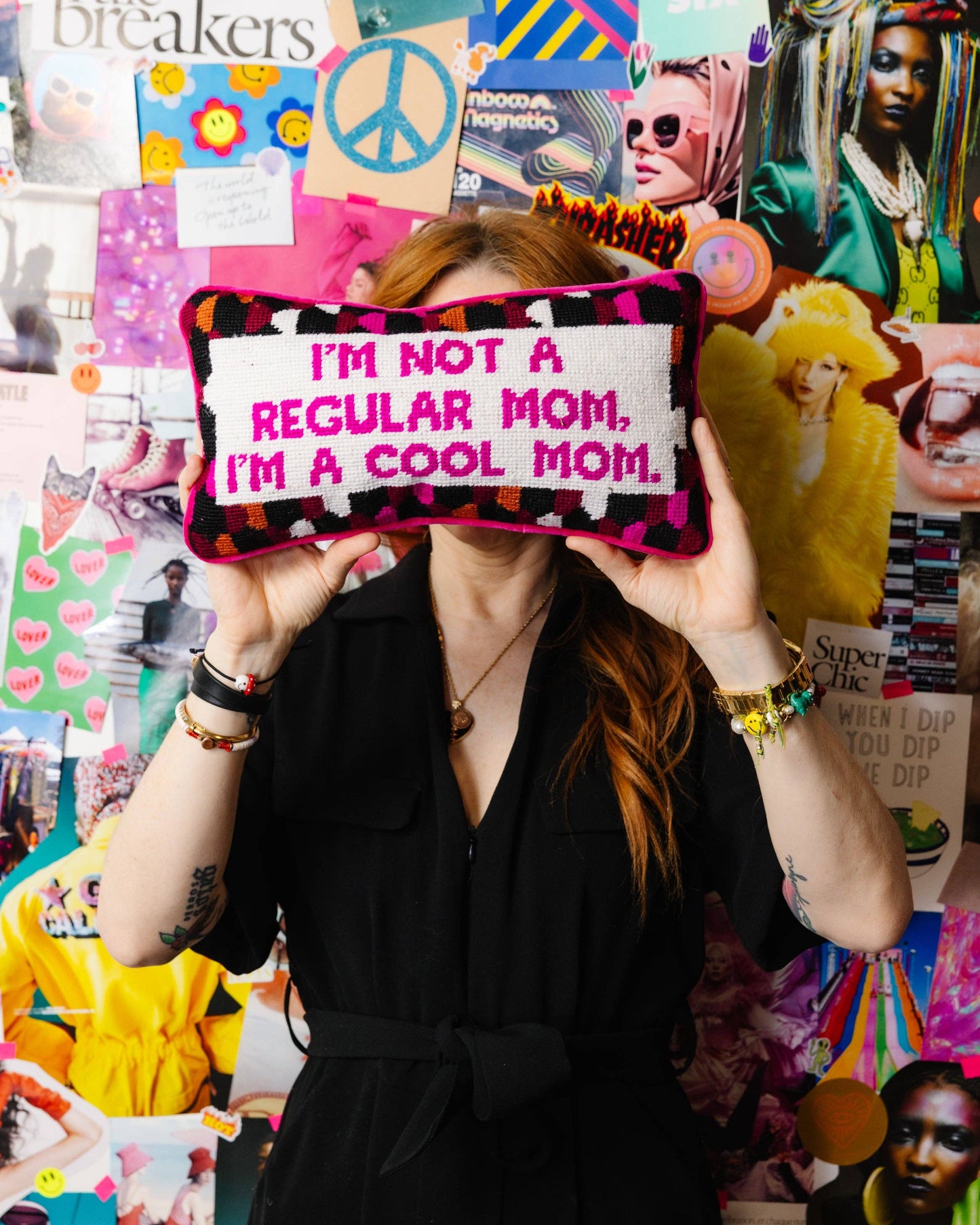 For the ones who know that being a mom doesn’t mean losing your edge. This pillow is for those who say, ‘I’m not a regular mom, I’m a cool mom,’ because why be basic when you can be fabulous? Embrace the latest joy-inspired decor movement, and transform your home with Furbish Studio’s Needlepoint and Statement Pillows.
