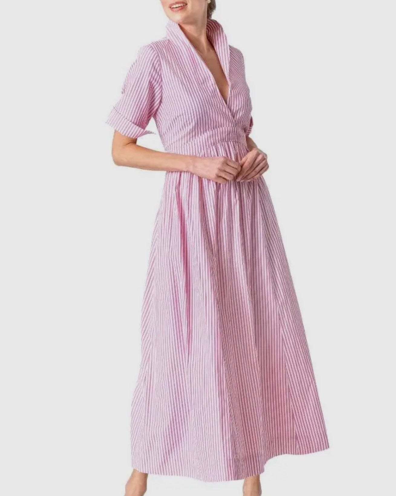 Wash & Wear June Dress | Pink, Navy, Orange, Light Blue Stripes