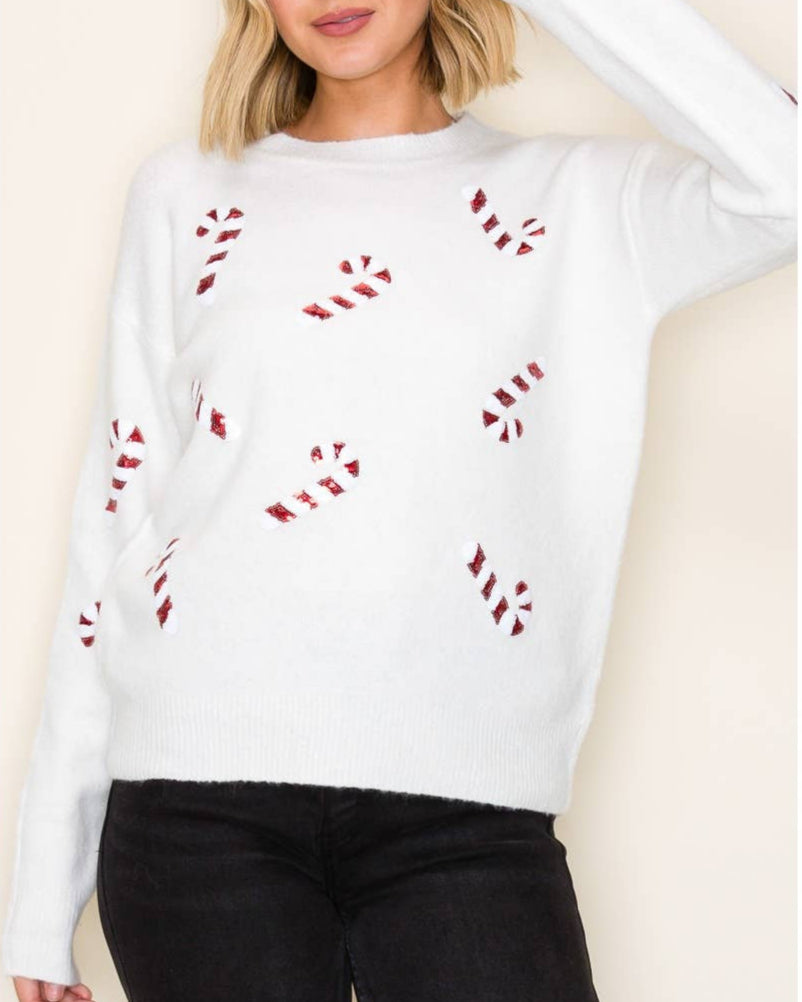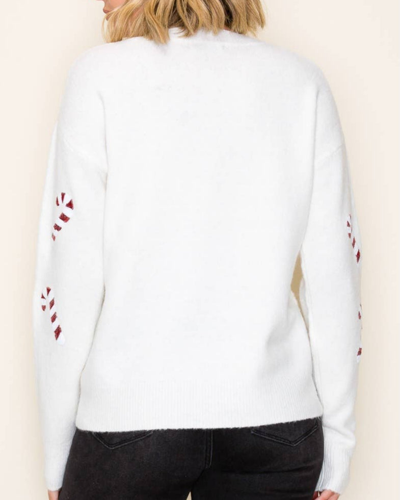 CHRISTMAS, SQUIN CANDY CANE, CREW NECK, LONG SLEEVE, PULLOVER SWEATER