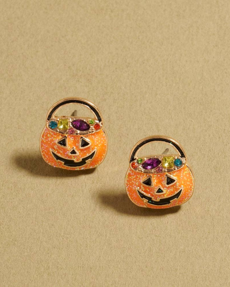 These pumpkin basket earrings add sparkle to your fall style with rhinestone accents and a festive design. Lightweight and playful, they are a fun choice for Halloween events or seasonal everyday wear.