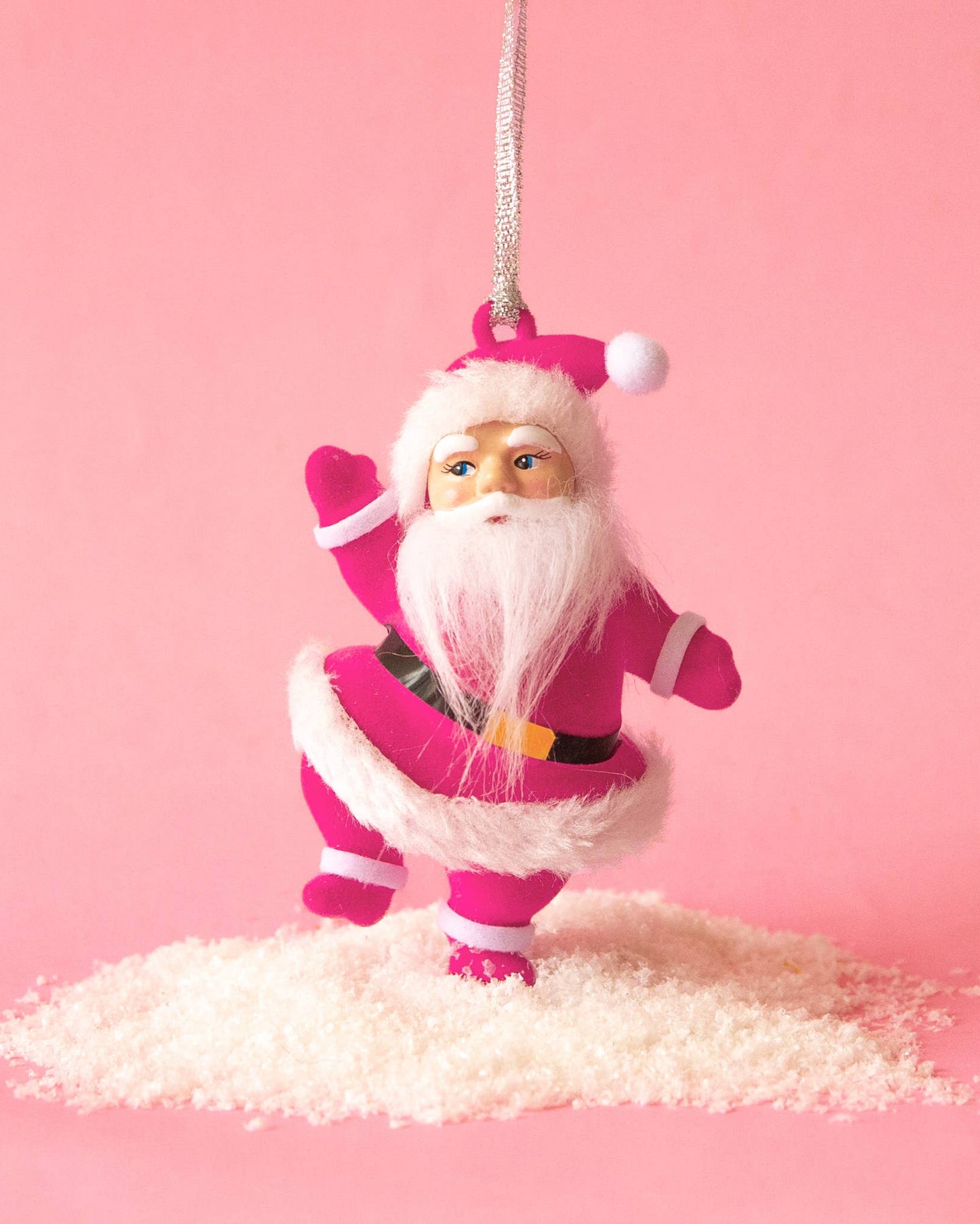 Retro Dancing Christmas Santa Ornament | Electric Pink